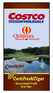 | CertiFresh's custom cigar program is the ultimate upscale tournament gift! With CertiFresh's unique, customizable packaging you can offer a luxury product at an attractive price point. Not only can we customize the art card with your customers logo, but we can add a marketing message or coupon to reap rewards long after the tournament is over. No other cigar company facilitates full customization of a cigar gift while maintaining the ALL IMPORTANT brand name of the cigar. Private label cigars are not luxury items, they are throw away novelties that literally leave a bad taste in the customers mouth! |